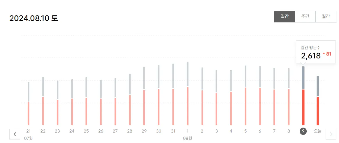 이때 하루 방문자 1000명을 돌파하며 다른 글들도 버프를 받기 시작했다. 아마 이쯤이 그동안 쌓아 왔던 블로그의 신뢰도가 어느 정도 자리 잡은 게 아닐까 생각해 본다.