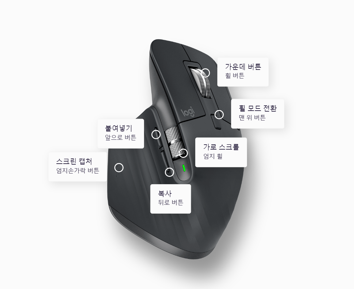 이번에 로지텍 마스터 3S 마우스를 구매했는데요. 마우스 버튼에 내가 자주 사용하는 기능의 설정값을 정할 수가 있더라고요. 지금껏 그냥 수신기를 꽂아서 사용하기만 했지 뭘 딱히 설정하지는 않았는데 가격대가 있는 만큼 이런 디테일한 기능이 기본적으로 탑재되어 있는가 봅니다.
