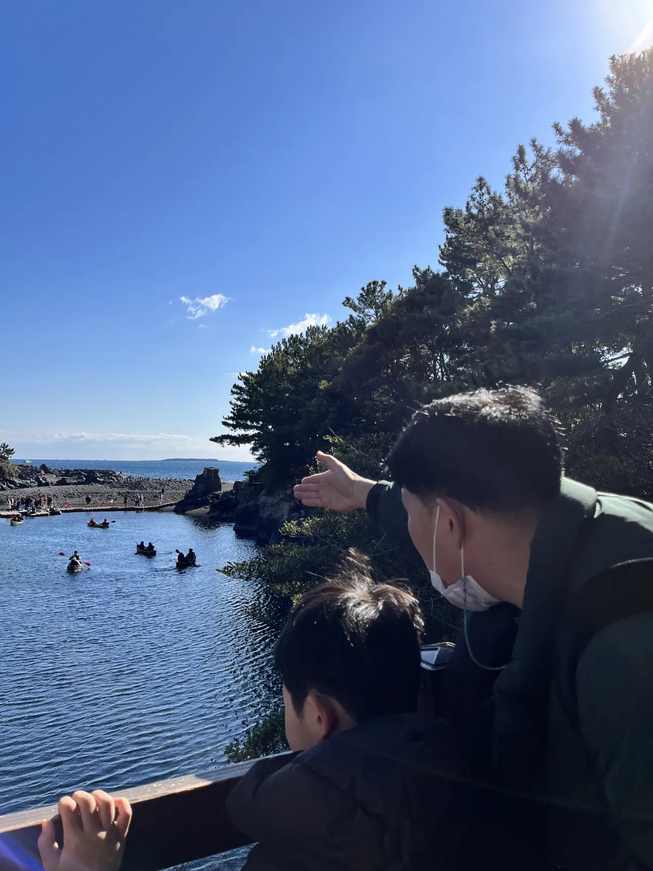 당연한 이야기이지만 쇠소깍은 자연이기 때문에 날씨가 아주 큰 관건인데요! 제주도는 겨울이라도 비교적 춥지 않은 날이 많으니 그리 어렵지 않은 경우 같아요. 햇볕과 쇠소깍의 천이 만나는 순간에는 정말 그 어떤 그림보다 예쁘답니다.