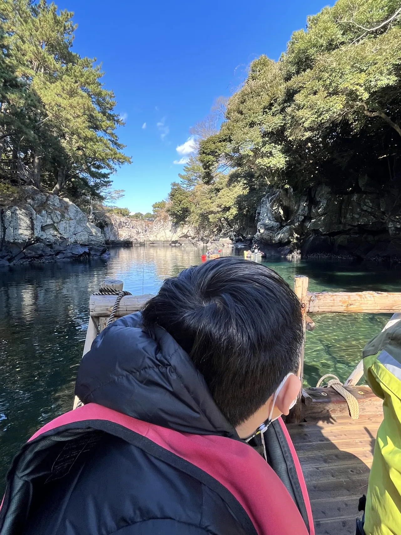 당연한 이야기이지만 쇠소깍은 자연이기 때문에 날씨가 아주 큰 관건인데요! 제주도는 겨울이라도 비교적 춥지 않은 날이 많으니 그리 어렵지 않은 경우 같아요. 햇볕과 쇠소깍의 천이 만나는 순간에는 정말 그 어떤 그림보다 예쁘답니다.